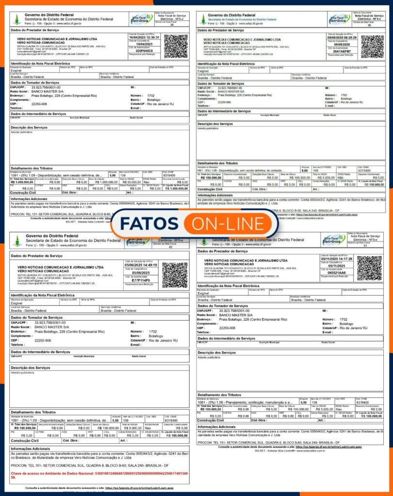 A nota fiscal coloca o Vero Notícias no centro das investigações, não mais como mero veículo de imprensa, mas como possível beneficiário de recursos ilícitos.