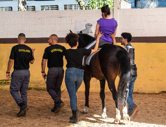 Por fim, o policial afirma que os familiares não podem entrar no ambiente em que a equoterapia é feita, porque isso pode impactar negativamente o paciente no processo.