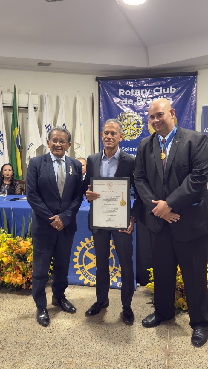 Criada em 2023, a comenda agracia personalidades cuja trajetória pública e comunitária traduz o espírito rotário do lema “dar de si antes de pensar em si”. Um dos homenageados, foi o Secretário de Comunicação do Distrito Federal, Weligton Luiz Moraes.
